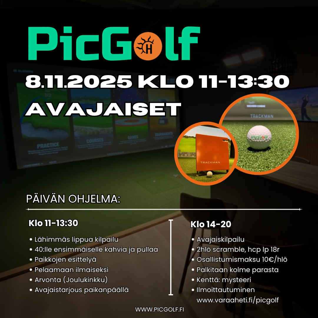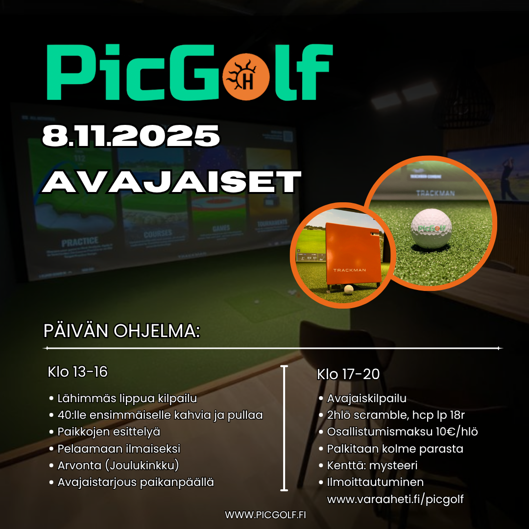 Tervetuloa PicGolfiin lauantaina 8.11.2025 klo 13 alkaen. Osoite Huumantie 5, 48230 Kotka
